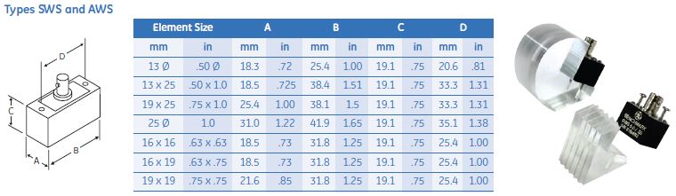 AWS和SWS型传感器具有可互换的楔形(单独出售)